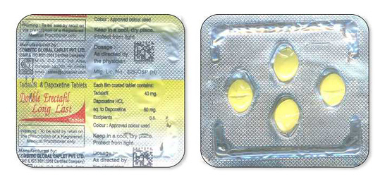 - Formen und Dosierungen: Tabletten mit Tadalafil 20mg und Dapoxetin 60mg