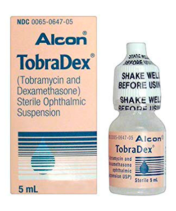 - Tobramycin Dexamethason wird zur Behandlung von bakteriellen Augeninfektionen und zugehöriger Entzündungen eingesetzt. Das Medikament ist eine feste Kombination aus einem Aminoglykosid-Antibiotikum (Tobramycin) und einem Kortikosteroid (Dexamethason).